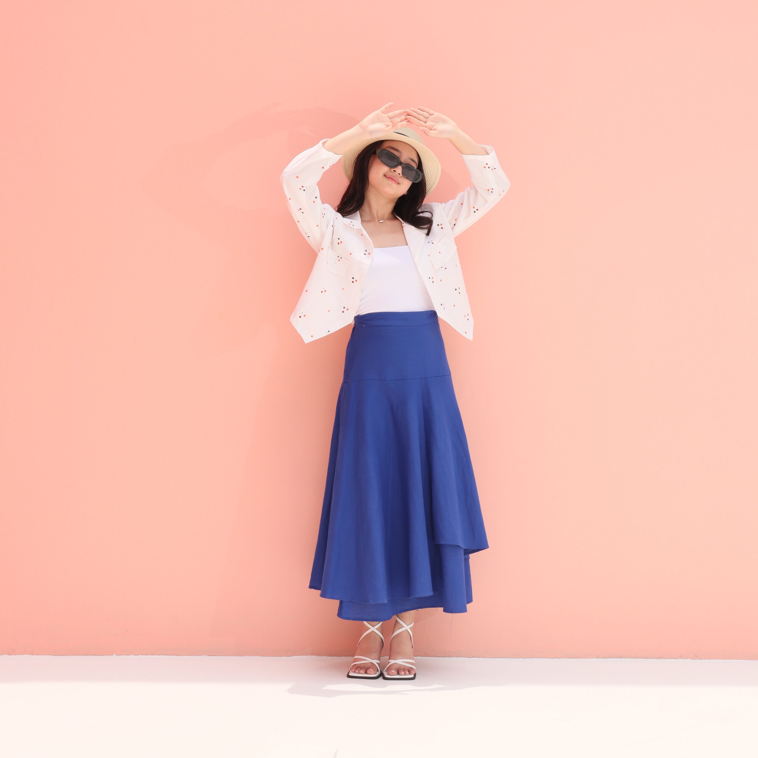 Zelonica Monalica skirt rok susun Bahan Katun linen